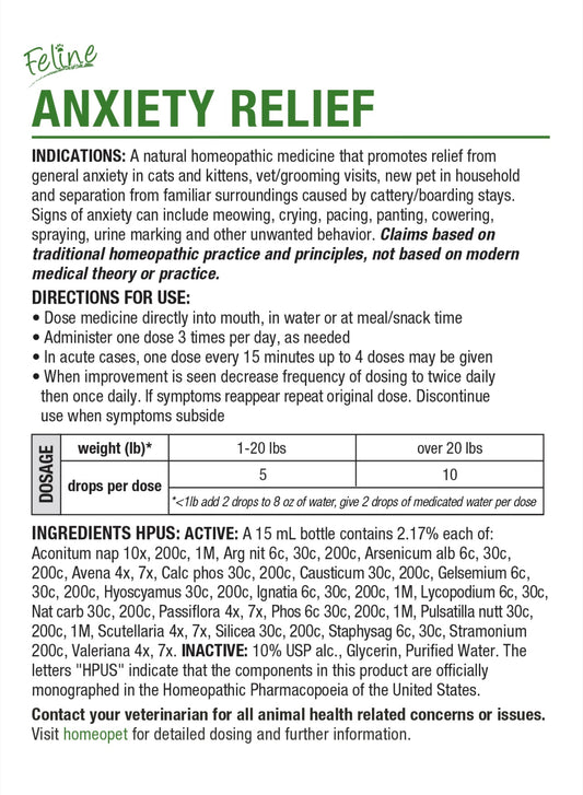 HOMEOPET FELINE ANXIETY RELIEF