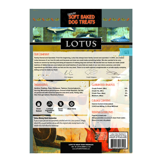 Family-owned and operated since 2003, Lotus Pet Foods focuses on oven-baked recipes for both food and treats. Oven-baking means less processing, less starch, and more fresh meats, fish, and poultry in every bite. And because Lotus bakes every treat in their own human-grade bakery, you can trust the quality and safety behind each bag.